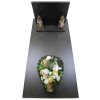 Základ smútočného venca pozostáva z umelej smrekovej čečiny upevnenej na kovovej konštrukcii. Je ručne zdobený umelými kvetmi a textilným dekoračným materiálom. Veniec je svojim prevedením vhodný na smútočné a spomienkové udalosti.